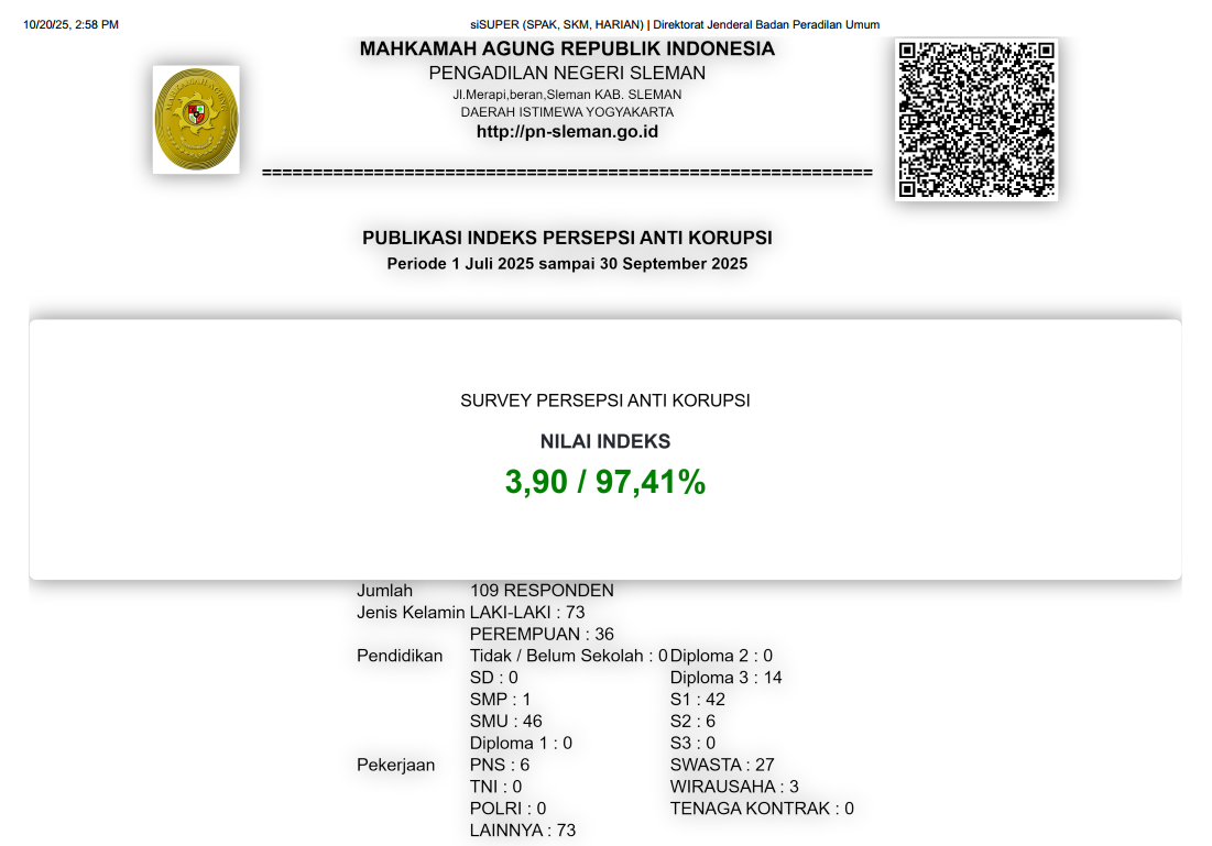 Senin, 20 Oktober 2025 diadakan apel pagi di halaman Pengadilan Negeri Sleman. Apel diikuti oleh Ketua, Wakil Ketua, Para Hakim,...